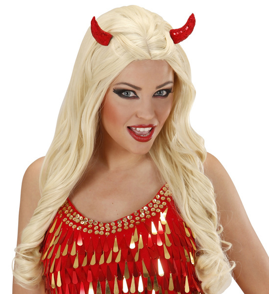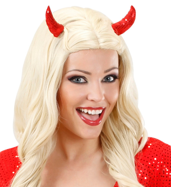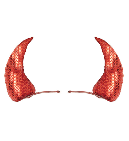Rogi diablicy z cekinami wypchane watoliną mocowane na spinkach do włosów.