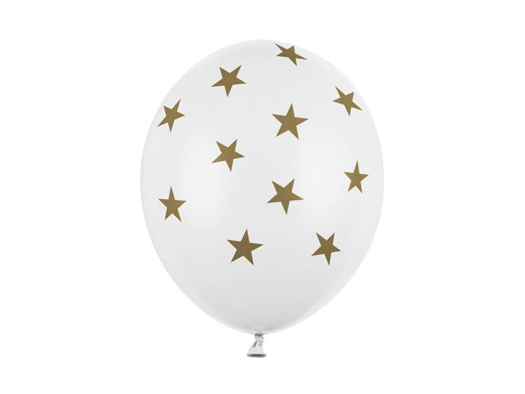 Balony Strong w kolorze Pastel Pure White z pięciostronnym nadrukiem złotych gwiazdek.