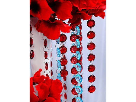 Girlanda kryształowa w kolorze bordowym, długość 1 metr. Średnica kryształowego kółka 18 milimetrów.