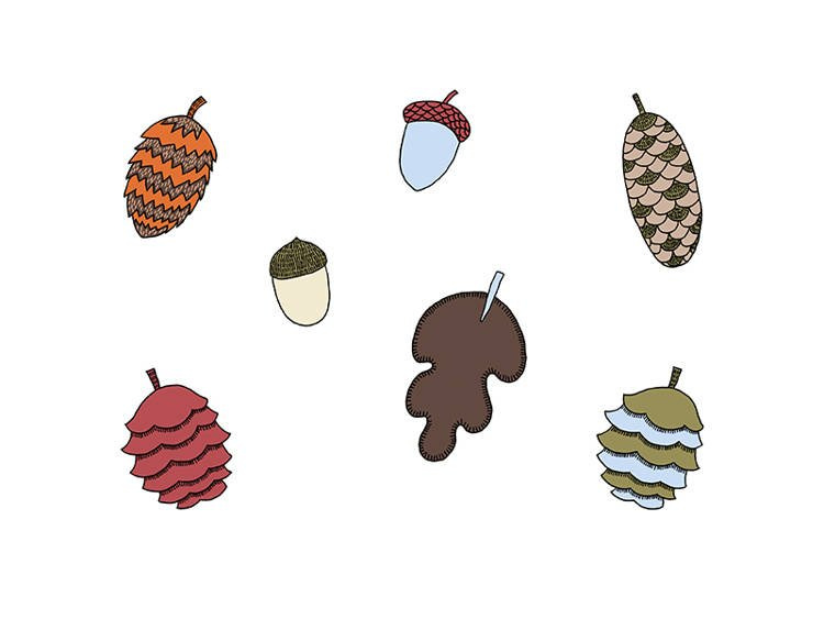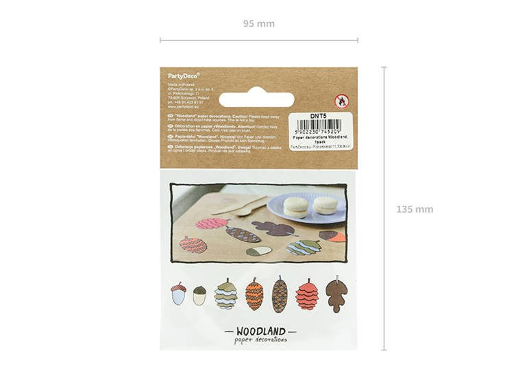 Dekoracje papierowe Woodland, mix wzorów (szyszki, liście i żołędzie), wymiary od ok. 3 x 4,5 cm do ok. 6 x 10 cm.(1 op. / 7 szt.)