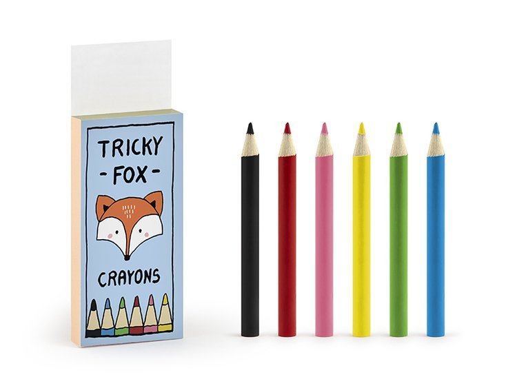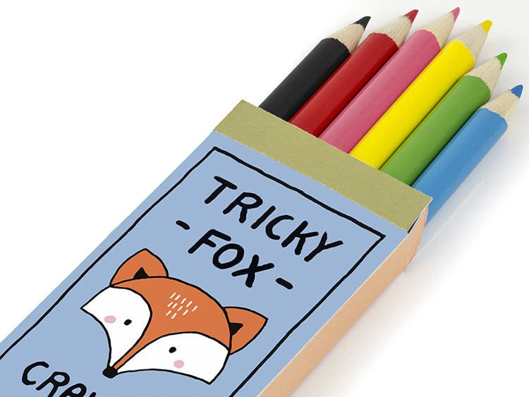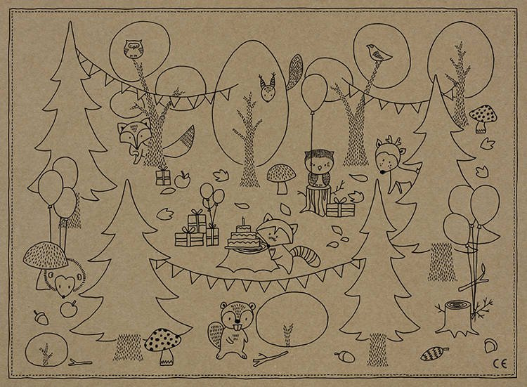 Kolorowanka Woodland wykonana z papieru kraft, w zestawie kolorowanka - 6 szt. - oraz 6 kredek (czarna, niebieska, zielona, czerwona, różowa i żółta).(1 karton / 40 op.)(1 op. / 6 szt.)