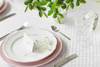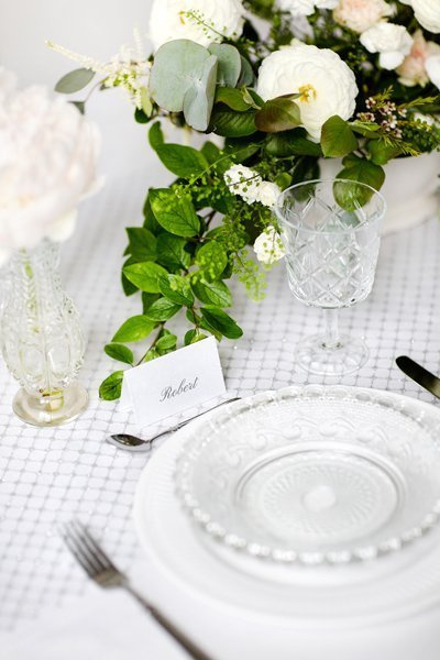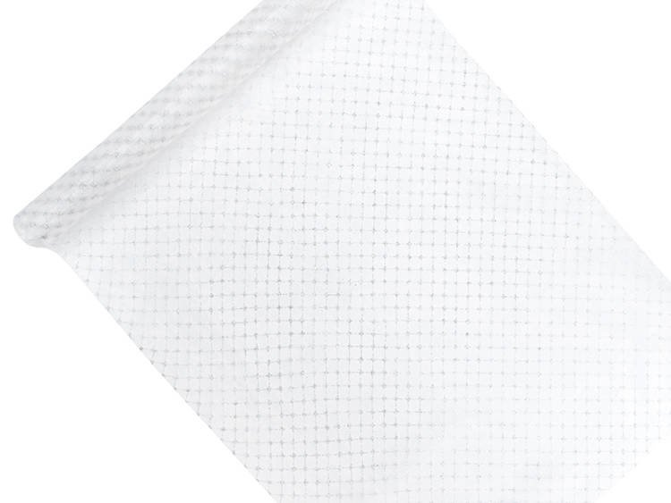 Organza w kolorze białym ze srebrnym, brokatowym, jednostronnym nadrukiem, wymiary 0,48x9 metrów.