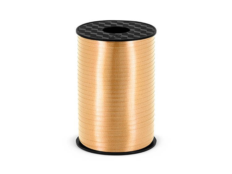 Wstążka plastikowa w kolorze jasnozłotym, szerokość ok. 5 mm, długość ok. 225 m.(1 karton / 50 szt.)