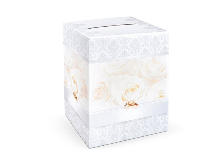 Pudełko na telegramy z papieru ze srebrnym nadrukiem, wymiary pudełka po złożeniu 25x25x30 centymetrów.(1 karton / 40 szt.)