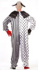 Połowa stroju biała w czarne paski, połowa - biała w czarne kropki.