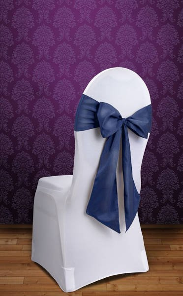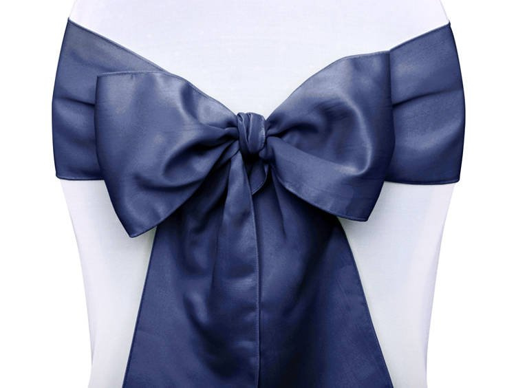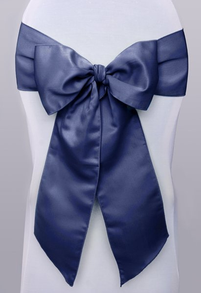 Szarfy na krzesło z grubej matowej satyny w kolorze granatowym, długość 2,75 metra, szerokość 15 centymetrów.(1 karton / 10 op.)(1 op. / 10 szt.)