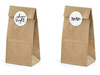 Torebki na słodycze wykonane z papieru kraft, z 6 białymi naklejkami: shine bright, xoxo, you're a gem, wymiary po złożeniu ok. 8x18x6 cm.(1 karton / 50 op.)(1 op. / 6 szt.)