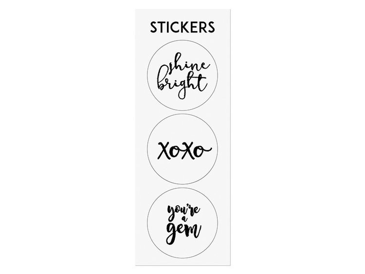 Torebki na słodycze wykonane z papieru kraft, z 6 białymi naklejkami: shine bright, xoxo, you're a gem, wymiary po złożeniu ok. 8x18x6 cm.(1 karton / 50 op.)(1 op. / 6 szt.)