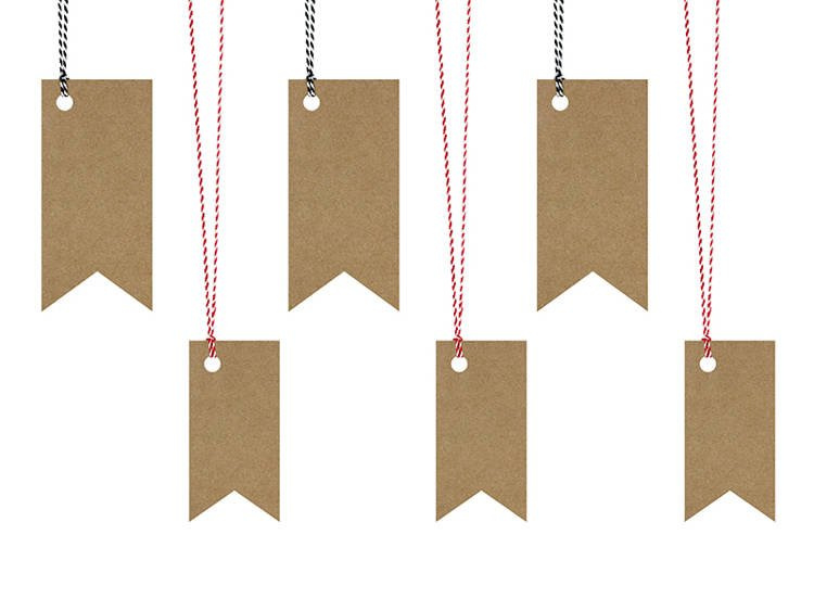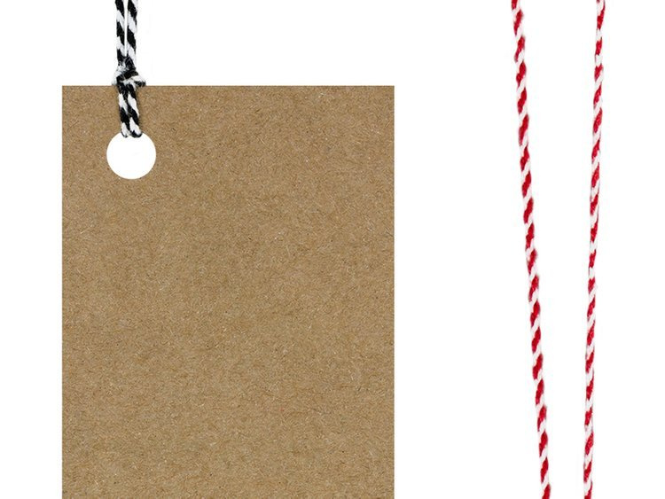 Zawieszki do prezentów Flaga z papieru kraft. W zestawie: 3 zawieszki małe (wymiary ok. 3,5x7 cm), 3 zawieszki duże (wymiary ok. 4,3x9 cm), ok. 4,5 m biało-czerwonego sznurka oraz ok. 4,5 m biało-czarnego sznurka.(1 op. / 6 szt.)