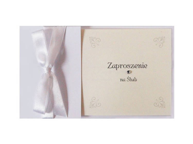 Zaproszenia ślubne z kokardą w kolorze białym, wymiary 9,5x16 centymetrów.(1 op. / 10 szt.)