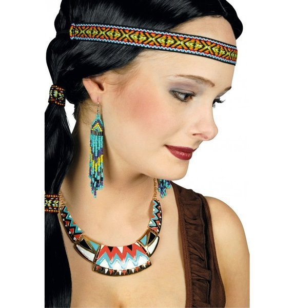 Wielokolorowy naszyjnik z motywem indiańskim.