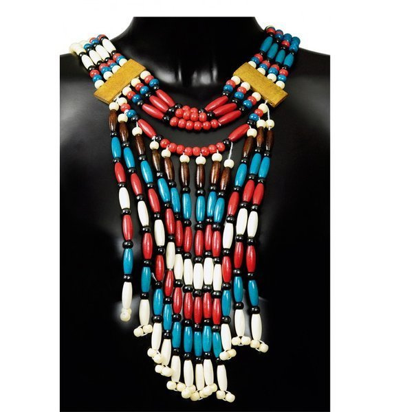 Wielokolorowy drewniany naszyjnik w stylu indiańskim.