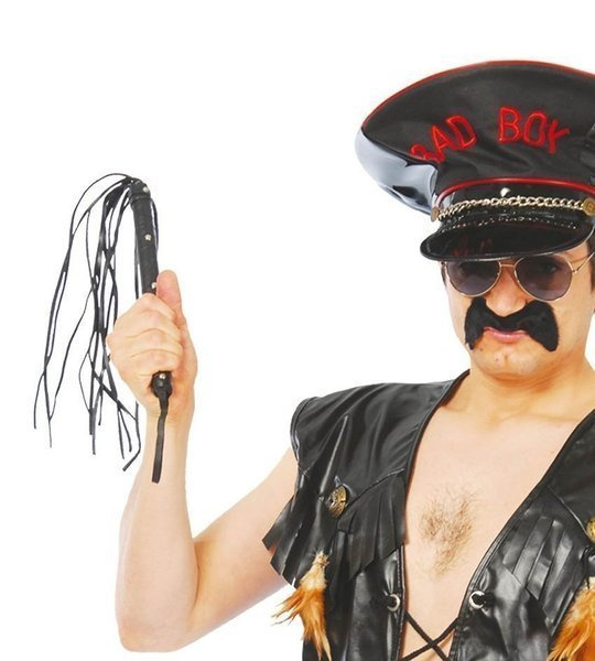 Pejcz wykonany długich, plecionych ze sobą pasków materiału imitującego skórę.