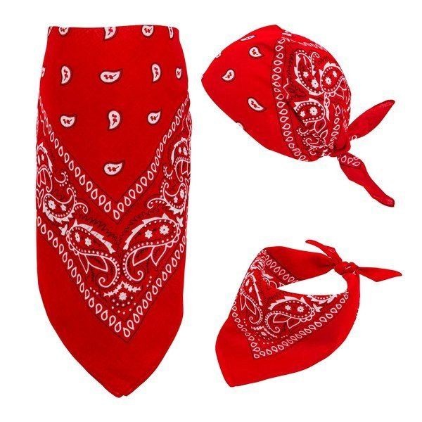 Czerwona bandana ze wzorem.