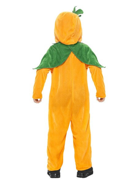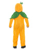 Kombinezon pluszowy z kapturem w kolorze pomarańczowo-zielonym.