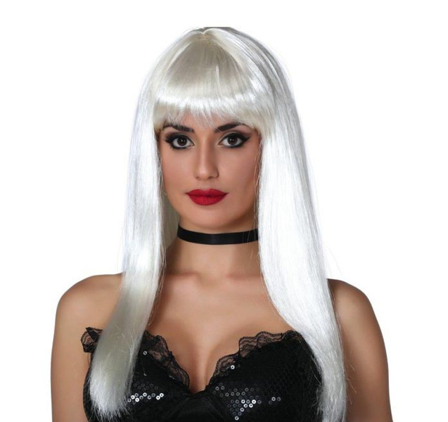 Peruka w kolorze białym mocowana na elastycznej siatce.
