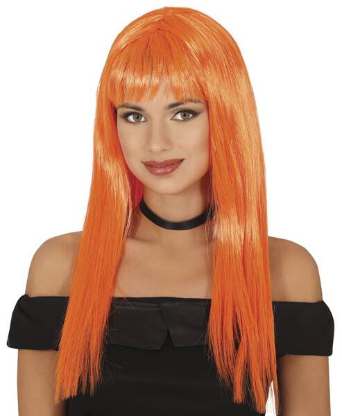 PERUKA DŁUGA Z GRZYWKĄ POMARAŃCZOWA