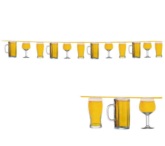 • Girlanda papierowa w kształcie kufli, szklanek i kieliszków z piwem.