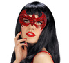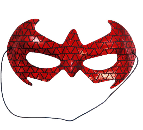 - Maska w efektownym wzorze czerwono-czarnej kraty.
