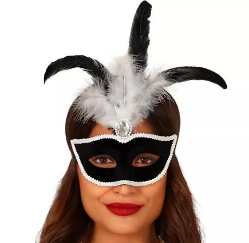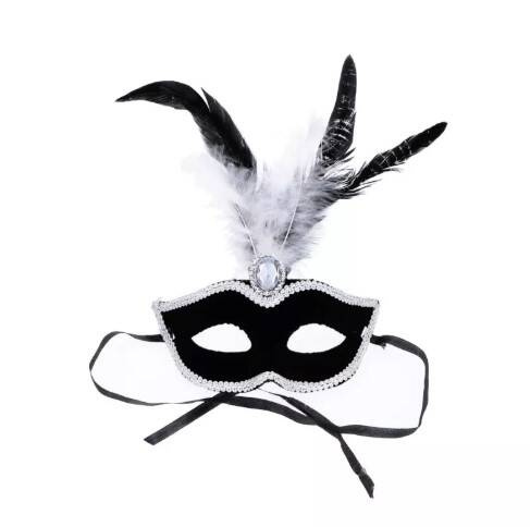 Maska Karnawałowa Wenecka na Twarz z Cekinami i Piórami.
