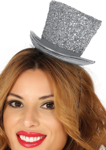 Mini kapelusik w kolorze srebrnym.