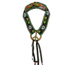 - Posiada ozdobne, czarne tasiemki z kolorowymi koralikami.