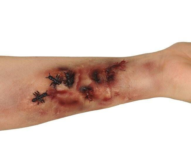 Masa w kolorze beżowym, umożliwiająca stworzenie rany z której wychodzą mrówki.