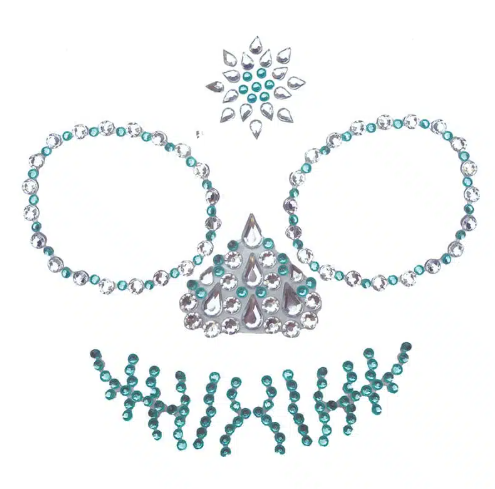 - Kompletny zestaw ozdób na całą twarz – w tym klejnociki do okolic oczu, nosa, czoła i ust, tworzące motyw czaszki.
