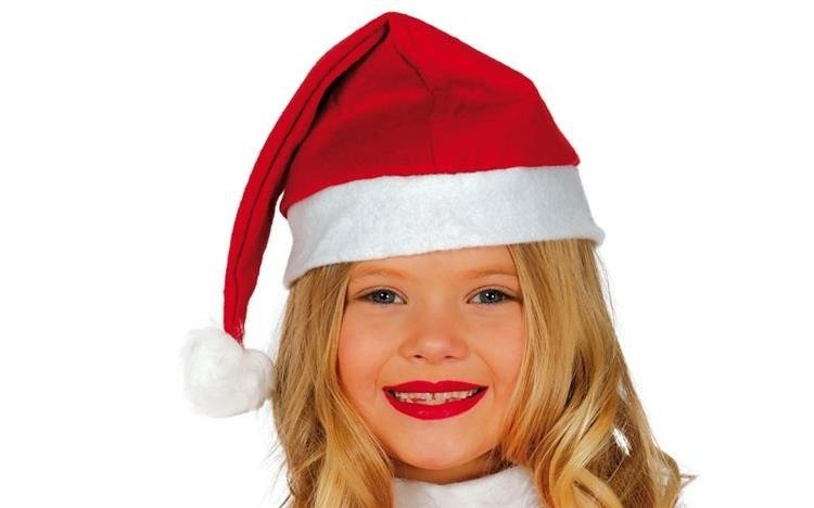 Czapka Mikołaja/Mikołajki wykonana z czerwonego filcowego materiału.