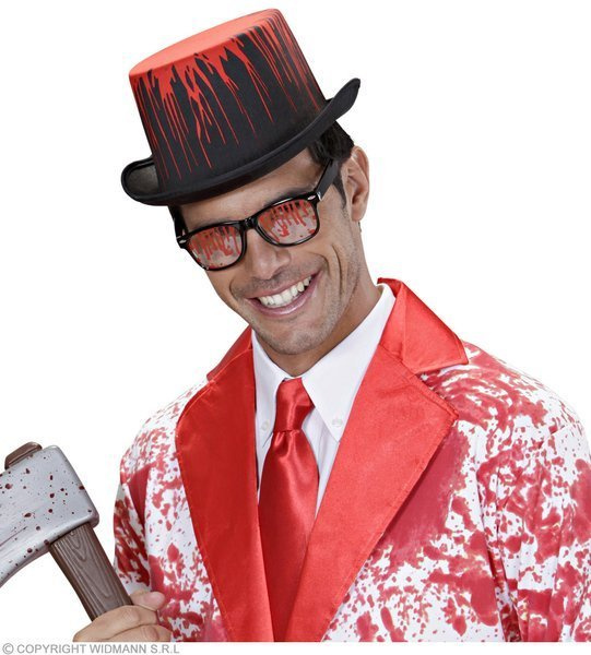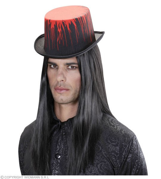 Kapelusz wykonany z czarnego materiału. Na górze czerwona plama imitująca krew.