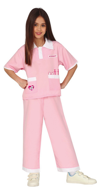 Bluzeczka posiada dwie kieszonki, na jednej nadruk psa i kota w sercu, w drugiej nadruk nożyczek i strzykawek.