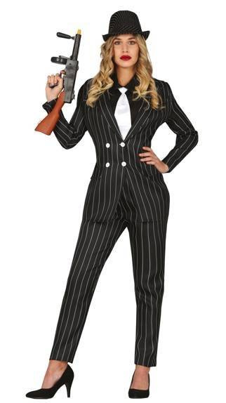 • Strój wykonany z materiału w kolorze czarnym w białe paski.