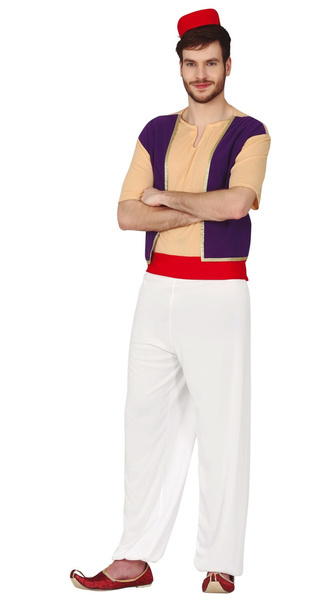 • Strój w kolorze brzoskwiniowo-białym z fioletowymi i czerwonymi elementami.