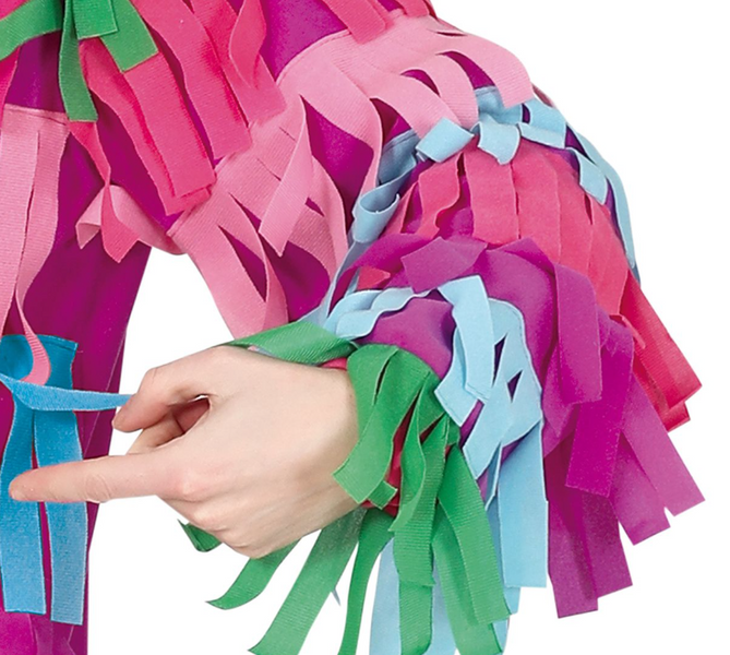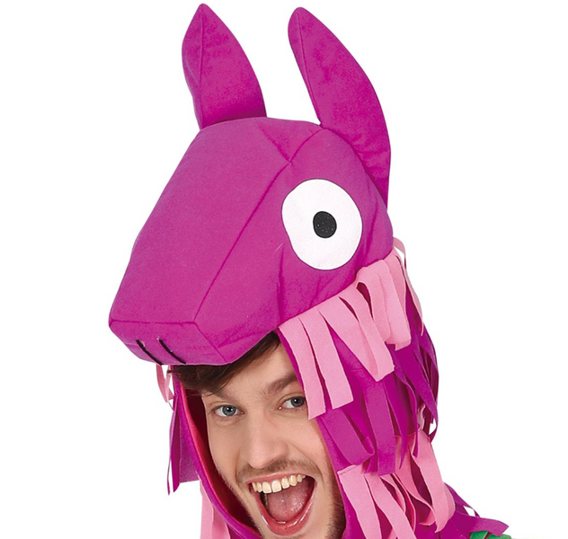 Kombinezon wielokolorowy z kapturem imitującym głowę lamy.