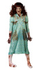 Akcenty w postaci kwiatów, koronki i ozdobnych, białych guzików.