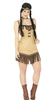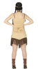 Beżowa sukienka z ciemnymi brązowymi frędzelkami.