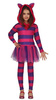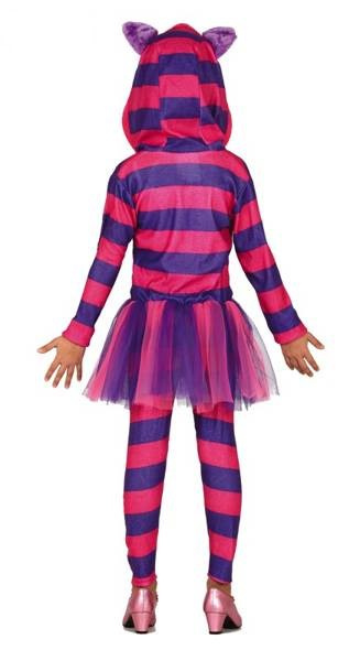 • Strój wykonany z materiału w różowo-fioletowe paski.