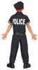 Czapka oraz kombinezon są w kolorze granatowym z czerwonymi elementami.