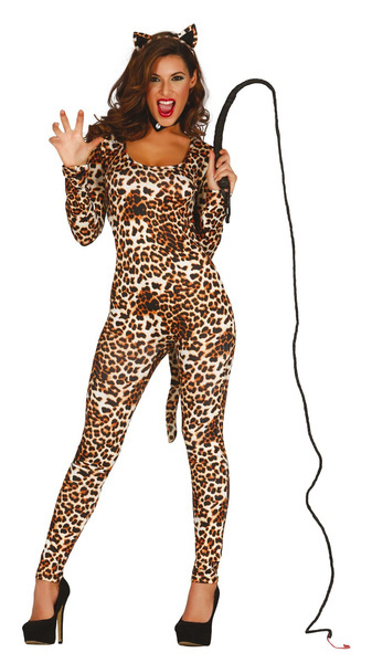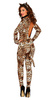 Kombinezon jest w brązowo-czarne cętki.