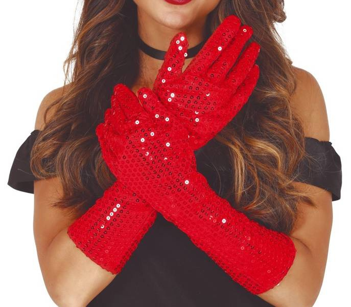 RĘKAWICZKI CEKINOWE CZERWONE 39 CM