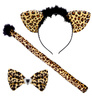 Opaska wykonana z solidnego tworzywa sztucznego. Elastyczna i lekka, nie uciska głowy. Do opaski przyczepione szpiczaste uszy. Uszka wykonane z materiału w cętki. W zestawie znajduje się muszkę ze srebrnym serduszkiem oraz ogonek wypełniony watoliną mocowany na gumce.