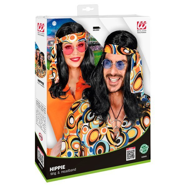 Nera "PARRUCCA ANNI 70 DISCO FEVER CON FASCIA" in scatola