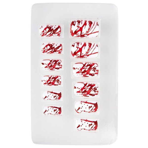 Zestaw Zakrwawionych Paznokci, dodatki, kolor czerwono-biały, samoprzylepne, w zestawie 12 sztuk