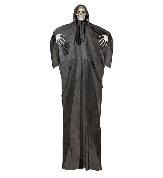 Dekoracja ponurego żniwiarza ubranego w czarną szatę.