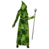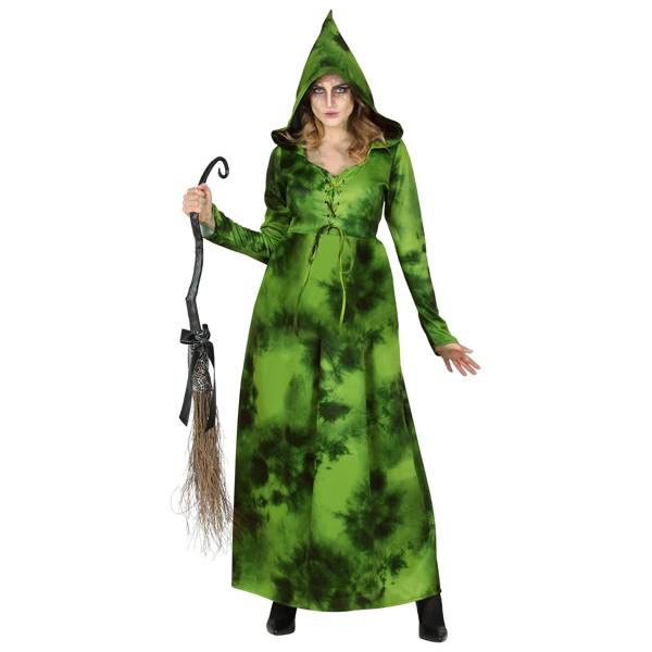 Sukienka czarownicy z kapturem w kolorze zielonym.