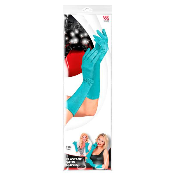RĘKAWICZKI SATYNOWE TURKUSOWE 40 CM