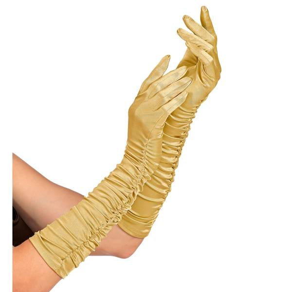 RĘKAWICZKI ZŁOTE MARSZCZONE SATYNOWE