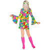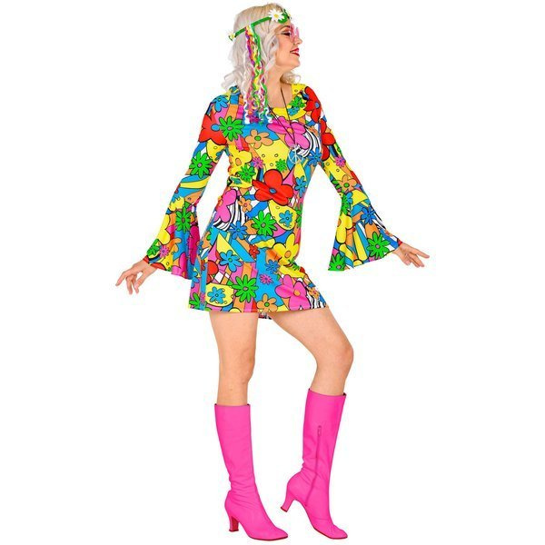 Sukienka w stylu lat 70 z długim, rozszerzanym rękawem.