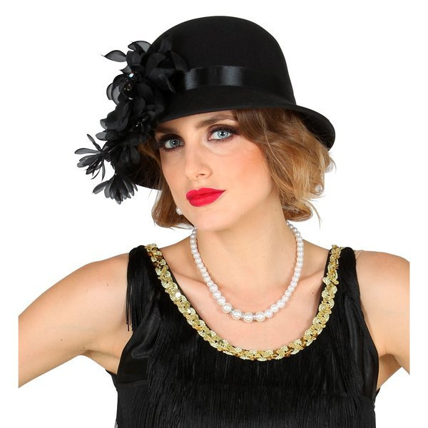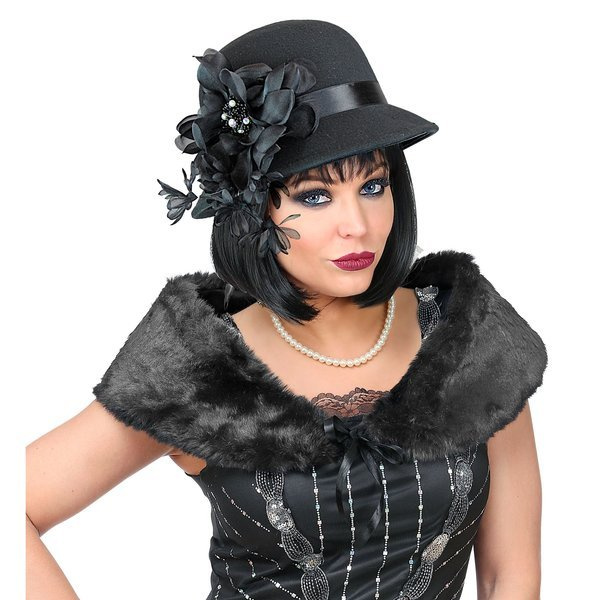 KAPELUSZ CZARNY DAMSKI RETRO CHARLESTON