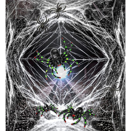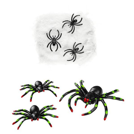 Zestaw składa się z pajęczyny na której przyczepione są trzy małe plastikowe pająki.